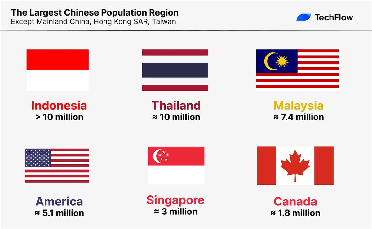 The Chinese-speaking market is the largest in the Asia-Pacific region, encompassing Mainland China, Hong Kong SAR, Taiwan, Singapore, Thailand, Malaysia, and many other places where there is a significant Chinese population. According to a survey report by Jintou, apart from China, the six countries with the most Chinese people are: