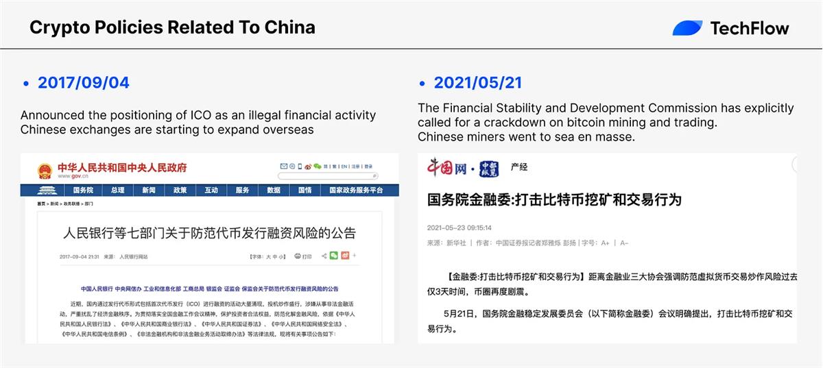 In September 2017, the People's Bank of China, together with other regulatory authorities, announced a ban on ICOs and the closure of cryptocurrency exchanges. Then, in May 2021, relevant regulatory authorities issued another notice to crack down on Bitcoin mining and trading activities. Since then, whether it's exchanges, project parties, miners, or users, they have all started to go overseas.