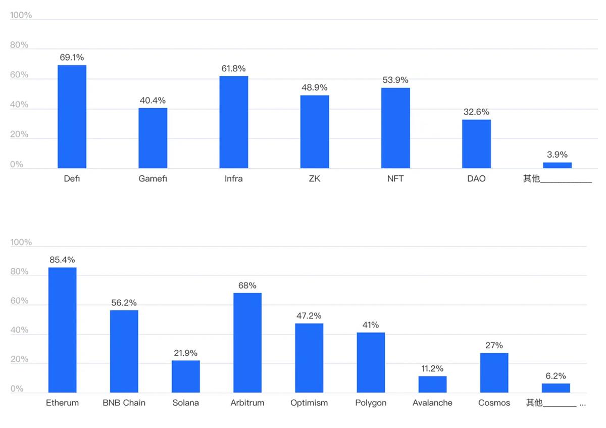 2-In terms of the specific areas of interest for Chinese-speaking users, Defi, infrastructure, and NFT are the top three. Regarding Layer1, Ethereum, Arbitrum, and BNB Chain are the top three in terms of attention.