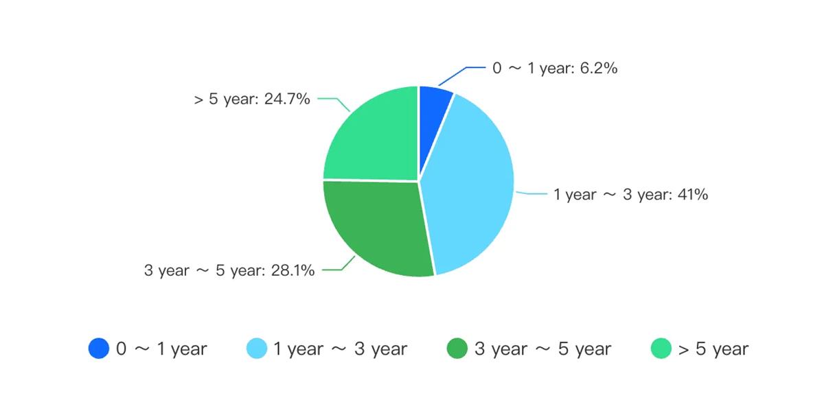 5-The cryptocurrency market is relatively new, and 1-3 year users are the largest group, accounting for 41% of Chinese-speaking users. The next largest group is the 3-5 year users, accounting for 28.1%.