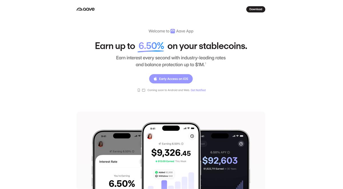 On November 17, Aave Labs announced something unusual for a decentralized finance protocol: a mobile app that looks nothing like crypto. The Aave App, now accepting waitlist signups on Apple's App Store, offers 6% to 9% annual yields on savings deposits. Users can fund accounts directly from their bank or debit card, watch interest compound in real time, and withdraw instantly. There are no obscure words like liquidity pools, collateralization ratios, or gas fees. The interface resembles a modern savings account, not a DeFi protocol.