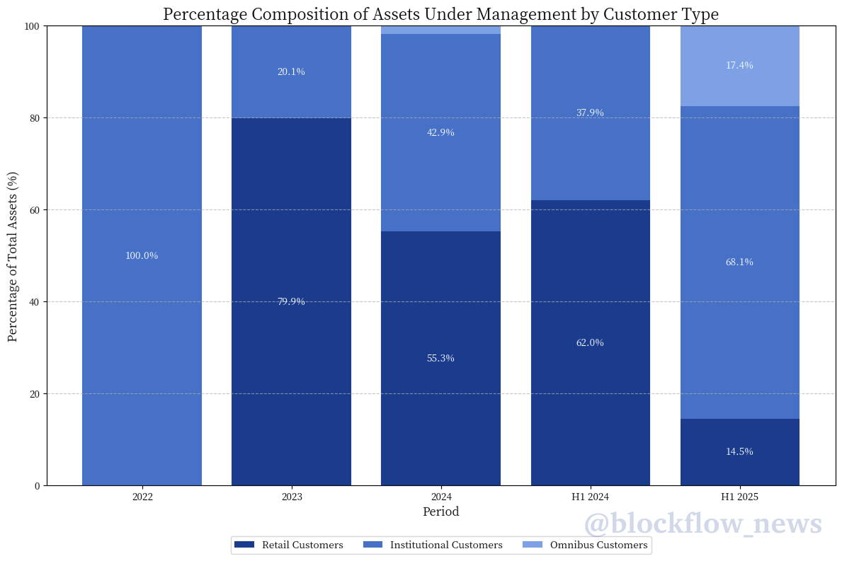 The "Omnibus" channel (effectively a B2B2C wholesale model) is the emerging growth engine. Volumes here swelled from a negligible HK$200mn in H2 2024 to HK$37.3bn in H1 2025, signaling HashKey's intent to leverage partner networks rather than fight the costly war for direct retail acquisition.